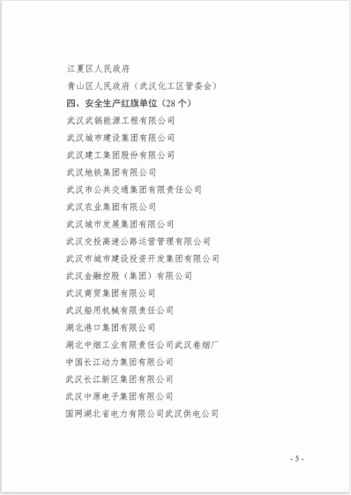 2月23日,武漢市安委會(huì)印發(fā)了“”2022年度全市安全生產(chǎn)工作考核情況的通報(bào)”,武漢交投高速公路運(yùn)營(yíng)管理有限公司榮獲“安全生產(chǎn)紅旗單位”。