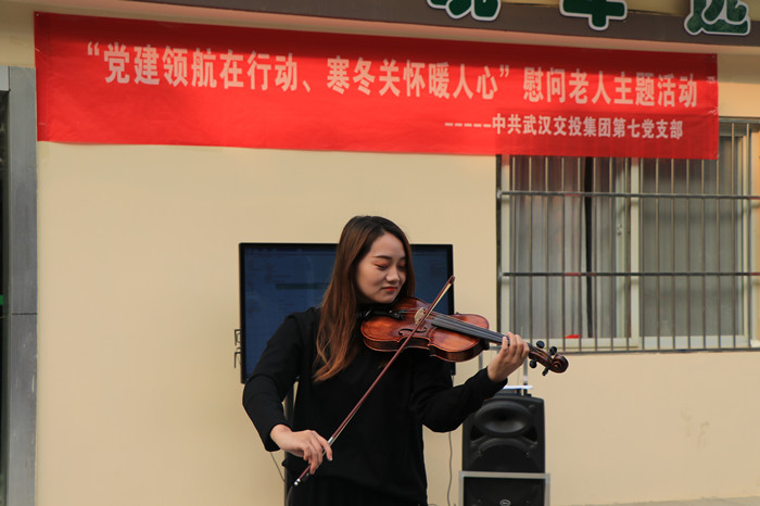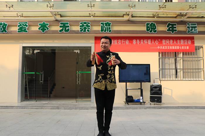 第七黨支部書記沈海濤首先為活動致辭,表達了武漢交投集團第七黨支部對老人們的親切慰問,并祝福老人們度過一個幸福的晚年。九點整,由交投員工及員工家屬組成的四環文藝小分隊為敬老院的老人們傾情上演了一臺自編自導的文藝演出,獨唱、舞蹈、戲曲、快板、器樂演奏……豐富多彩的節目輪番上演,充分展示了交投青年多才多藝的精神風貌和良好的企業形象。