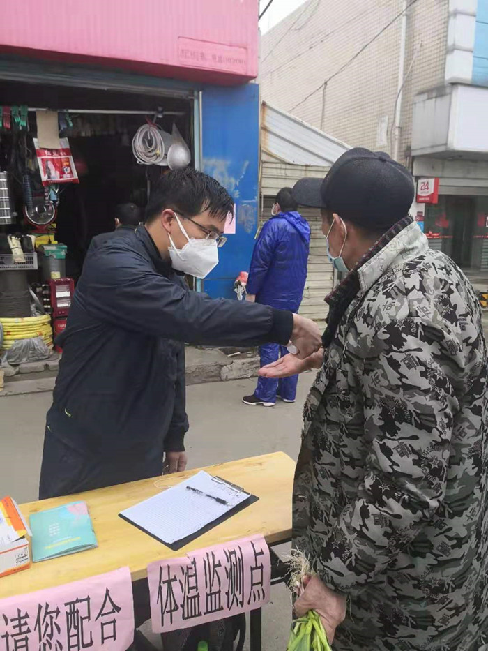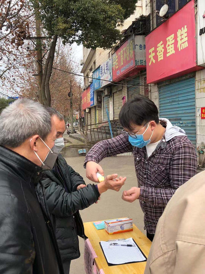 2月13日,集團第四黨支部李向群、甘偉龍兩位突擊隊員來到集團對口幫扶社區(qū)青山區(qū)廠前街道鐵鋪嶺社區(qū)現(xiàn)場,協(xié)助社區(qū)網(wǎng)格員做好宣傳、測溫、排查、登記、愛心口罩分發(fā)、環(huán)境衛(wèi)生消殺等工作。一張桌子、一份人員登記表、一把紅外測溫槍就是他們倆工作的全部裝備,是兩名突擊隊員堅守一天的陣地。近9個小時的值守,兩人連午飯都顧不上吃,簡單的幾口干糧就著白水,在執(zhí)勤站點的路邊風(fēng)餐陋食的囫圇解決。