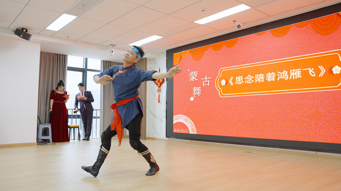 聯歡會在康養俏夕陽舞蹈團的優美舞姿中拉開帷幕,康養中心入住長者們個個能歌善舞,演繹的《夢中的村落》贏得陣陣掌聲。來自綜交院的一首男聲獨唱《如愿》讓現場觀眾感受到幸福生活的美好。來自運營公司的表演者演繹的《相親相愛》《送福》《彩韻水墨》《夕陽無限好》《黨旗飄揚的方向》節目,為長者們帶來青春的活力。所有演職人員熱情投入,將音樂與舞蹈融為一體,現場精彩絕倫,掌聲不斷。節目間歇穿插的互動小游戲將氣氛推向高潮,主會場與二三分會場視頻連線,長者們熱情互動,引發一陣陣歡呼聲浪。伴隨著全場雄壯的合唱《歌唱祖國》,聯歡會落下帷幕,現場觀眾激情澎湃,共同祝福祖國繁榮昌盛。整場演出豐富多彩,高潮迭起,為觀眾帶來了一場全新的視聽盛宴。