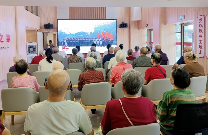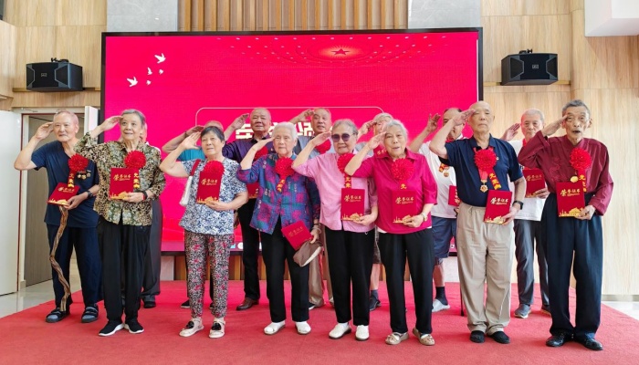 為紀(jì)念中國人民抗日戰(zhàn)爭暨世界反法西斯戰(zhàn)爭勝利80周年,傳承紅色基因,弘揚(yáng)偉大抗戰(zhàn)精神,9月3日,康養(yǎng)黨支部以“薪火傳承・砥礪初心”為主題,舉辦系列活動(dòng)。園區(qū)革命老兵、黨員齊聚一堂,通過聆聽紅色故事、感悟榜樣力量、重溫歷史瞬間,接受深刻的精神洗禮與思想淬煉。