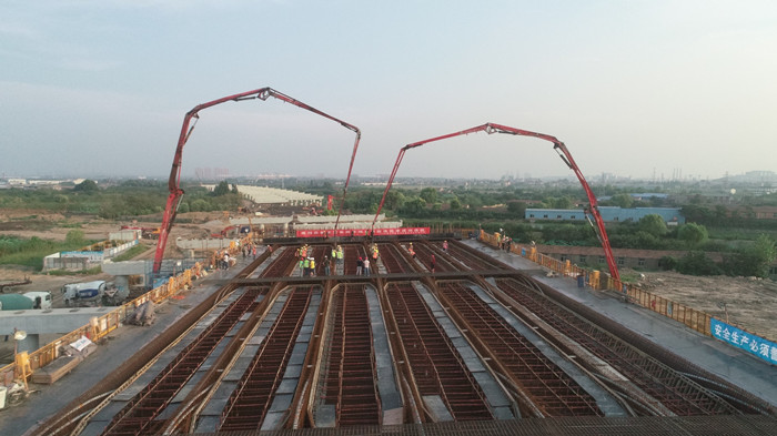 武漢東四環(huán)線項(xiàng)目首聯(lián)現(xiàn)澆箱梁混凝土澆筑在“百日大會(huì)戰(zhàn)”期間順利完成,履行了“百日大會(huì)戰(zhàn)”勞動(dòng)競(jìng)賽進(jìn)度節(jié)點(diǎn)計(jì)劃的承諾,為東四環(huán)項(xiàng)目的大干快上打下一針強(qiáng)心劑。