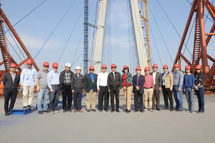 代表團一行觀看了青山長江公路大橋宣傳視頻,聽取了青山橋整體設計與建設進度方面的匯報,參觀了鋼箱梁焊接及斜拉索安裝等施工現場。代表團成員對青山橋項目在設計與建設方面取得的成果給予了高度評價。
