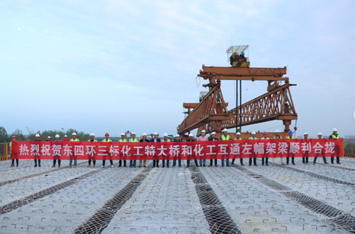 由武漢交投集團(tuán)投資建設(shè)的東四環(huán)線高速公路起于武漢繞城高速北湖互通,終點(diǎn)與青山長江公路大橋銜接,全長8.182公里,雙向8車道,設(shè)計(jì)車速100公里/小時(shí),共建3座互通立交橋及2座特大橋。此次架梁合攏掀起了2019年東四環(huán)線“沖刺四季度,力保三年攻堅(jiān)”勞動(dòng)競賽活動(dòng)的熱潮,向2019年底從北湖互通至青山長江大橋主線貫通邁進(jìn)了一大步,為確保2020年底全面建成東四環(huán)線工程奠定了堅(jiān)實(shí)的基礎(chǔ)。