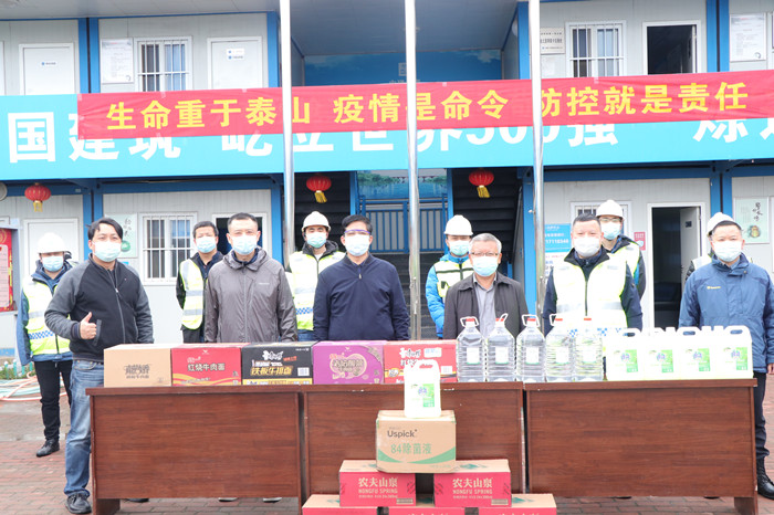 隨后,陳順平深入一線東四環各項目部送去酒精、84消毒液、除菌液防疫物資和方便面、礦泉水等慰問品,詳細查看了項目部食堂、辦公室及施工現場等防疫措施落實情況,對各項目部防疫防控和復工復產工作表示肯定。
