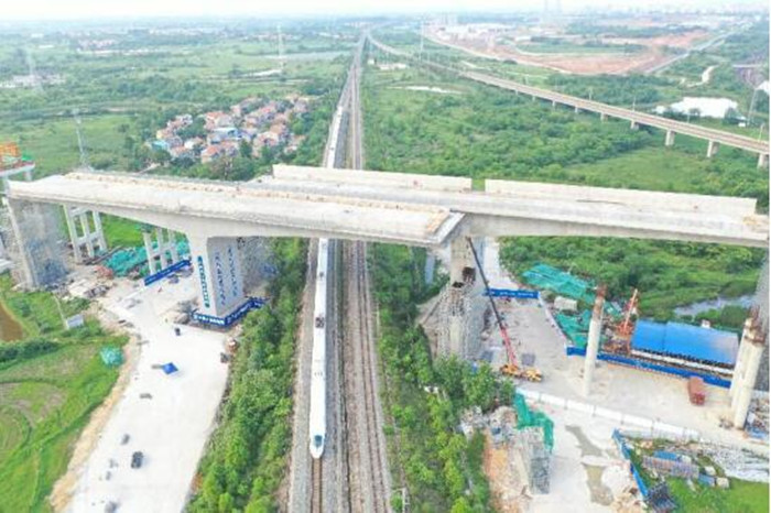 本次橋梁轉(zhuǎn)體施工依次跨越滬蓉高鐵下行線、麻武線、黃陂貨車聯(lián)絡(luò)線、滬蓉高鐵上行線四條既有營業(yè)線,作業(yè)空間高、臨近營業(yè)線距離近、安全風(fēng)險高、施工難度大,同時也是湖北省首次公路跨高鐵雙幅連續(xù)轉(zhuǎn)體施工。施工過程中,工作人員搶抓夜間“天窗點”,運用BIM技術(shù)構(gòu)建的轉(zhuǎn)體橋模型,利用測量機器人、物聯(lián)網(wǎng)無線傳輸技術(shù),對轉(zhuǎn)體過程實時跟蹤,為橋梁姿態(tài)與控制參數(shù)提供實時監(jiān)測及預(yù)警,保證安全平穩(wěn)轉(zhuǎn)體,成功將誤差控制在2毫米以內(nèi),同時最大程度上減少對運營鐵路的干擾。