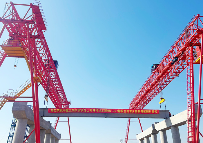 負(fù)責(zé)本次箱梁架設(shè)任務(wù)的是HNTJ-7標(biāo)段,施工線路全長(zhǎng)約11.845公里,橋梁占比100%,共設(shè)計(jì)預(yù)制箱梁5135片,全部由項(xiàng)目智慧梁場(chǎng)預(yù)制。項(xiàng)目全線首個(gè)智慧梁場(chǎng)占地約210畝,場(chǎng)內(nèi)設(shè)置10條智能生產(chǎn)線,配備40個(gè)移動(dòng)臺(tái)座、達(dá)產(chǎn)后可以達(dá)到“日產(chǎn)8片梁”高效運(yùn)轉(zhuǎn)的目標(biāo)。本次箱梁的成功架設(shè),為全線大干快上奠定了堅(jiān)實(shí)基礎(chǔ),助推項(xiàng)目建設(shè)跑出“加速度”。