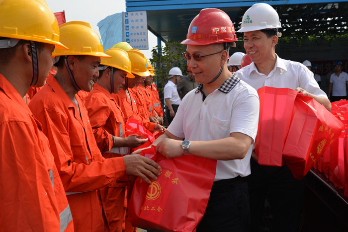 湖北省總工會副主席李春舫、交投集團總經(jīng)理陳順平親切慰問四環(huán)線項目一線產(chǎn)業(yè)工人