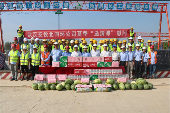 入夏以來,武漢持續多日出現高溫天氣,交投集團各重點工程建設現場、營運現場的基層職工依然堅守一線、揮汗如雨,全面確保工程按時序推進,確保企業生產經營活動正常開展。自6月底開始,武漢交投集團“送清涼”高溫慰問活動全面啟動。交投集團各項目分管領導分組帶隊深入到各項目一線,把關懷和囑托送給廣大基層員工,全體一線員工將諄諄叮囑化為昂揚前進的最大動力: