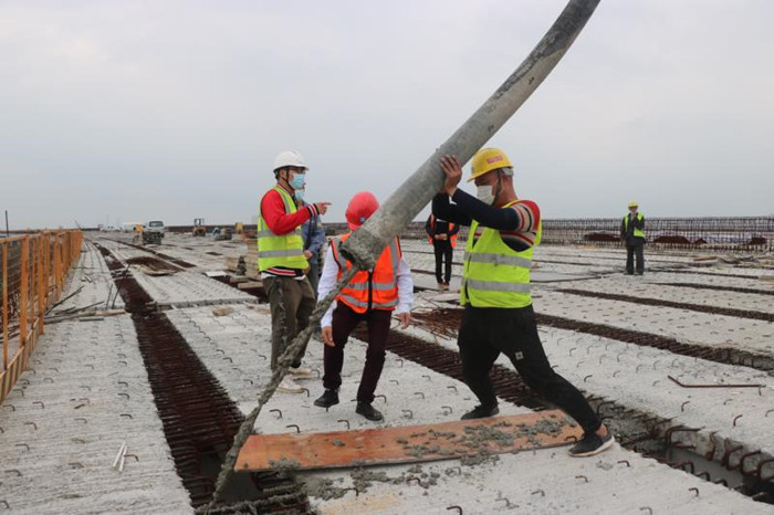 東四環(huán)線高速公路項目有序復(fù)工。3月26日下午3點28分,交投集團東四環(huán)線高速公路項目進行復(fù)工后首次混凝土澆筑,本次澆筑為東四環(huán)線第三標段跨綠色路右幅第1聯(lián)橋面系混凝土施工。為盡快復(fù)工生產(chǎn),東四環(huán)公司加強與地方政府協(xié)調(diào)對接,及時制定復(fù)工方案,第一時間制定新冠肺炎疫情防控方案和應(yīng)急預(yù)案,開通返崗復(fù)工接送專車,有效解決人員返崗、交通保障、材料供應(yīng)等方面困難,目前員工到崗率100%。