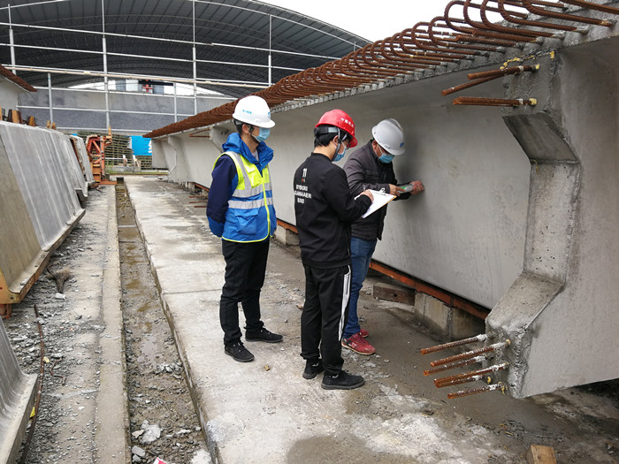 北四環(huán)線高速公路項(xiàng)目對(duì)預(yù)制梁外觀、回彈強(qiáng)度及上拱度進(jìn)行全面檢查