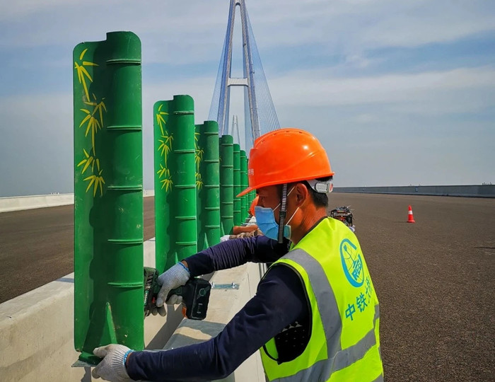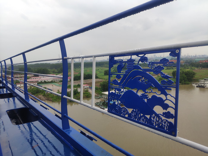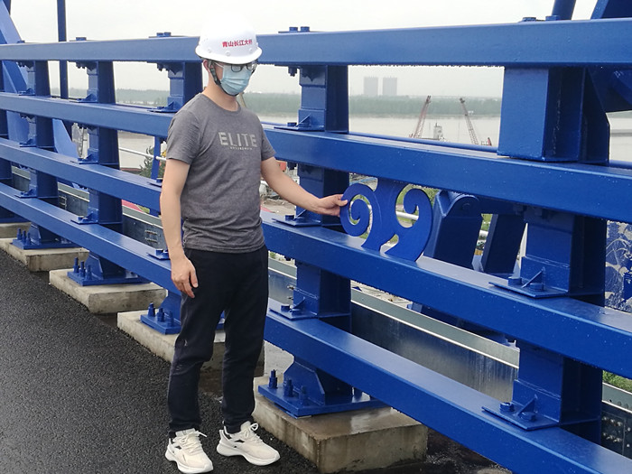 在“世界級(jí)尺度”之外,青山橋還有諸多細(xì)節(jié)之美。邊側(cè)防撞護(hù)欄每四節(jié)增設(shè)一塊浪花造型的裝飾板,為鋼筋鐵骨添了幾分靈動(dòng);外側(cè)欄桿上加入黃鶴樓等造型,與江城各地標(biāo)建筑遙相呼應(yīng);橋面中間的隔離欄上加裝綠色竹節(jié)造型的防眩板,既醒目又清新……觀者賞心悅目之余,不禁贊嘆建設(shè)者的用心與巧思。