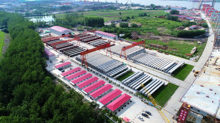 2018年7月,中國(guó)施工企業(yè)管理協(xié)會(huì)在青山橋南岸預(yù)制梁場(chǎng)舉辦“綠色建造、綠色發(fā)展”觀摩交流會(huì),全國(guó) 200 余名綠色環(huán)保工程專(zhuān)家齊聚現(xiàn)場(chǎng)。53畝的標(biāo)準(zhǔn)化T梁預(yù)制場(chǎng)布置有制梁區(qū)、存梁區(qū)、封閉式鋼筋加工車(chē)間、辦公及生活區(qū)四大核心區(qū),大面積草坪和植被環(huán)繞,整潔美觀、自然和諧。梁場(chǎng)進(jìn)出口設(shè)置的車(chē)輛自動(dòng)沖洗裝置,有效抑制施工現(xiàn)場(chǎng)揚(yáng)塵。水泥、粉煤灰等粉粒性原材料全部使用專(zhuān)用車(chē)輛運(yùn)輸;各類(lèi)臨時(shí)設(shè)施均采用標(biāo)準(zhǔn)化、可拆遷、可回收材料,減少資源浪費(fèi)。基坑開(kāi)挖采用鋼板樁圍堰,減少土方開(kāi)挖和回填量,保護(hù)用地。大體積混凝土采用冷卻水管循環(huán)水,預(yù)制 T 梁全自動(dòng)循環(huán)水噴養(yǎng)護(hù);梁場(chǎng)隨處可見(jiàn)的太陽(yáng)能路燈、空氣能熱水器等清潔能源;用多層鋼骨架活動(dòng)板房建設(shè)的臨時(shí)辦公和生活用房,處處踐行節(jié)能環(huán)保。
