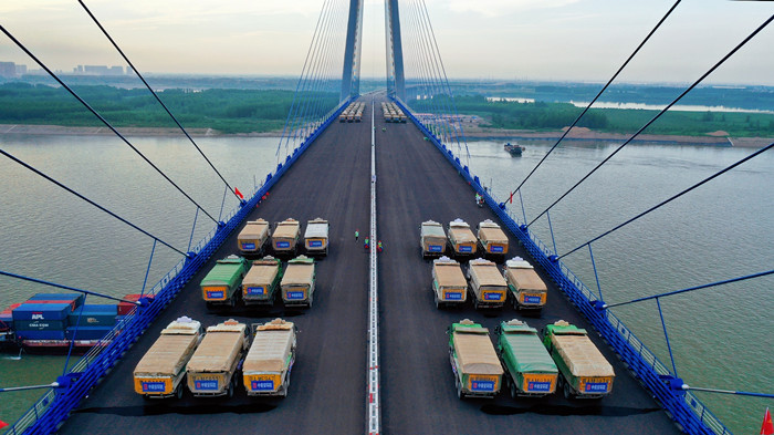 青山橋位于天興洲長(zhǎng)江大橋和陽(yáng)邏長(zhǎng)江大橋之間,是武漢四環(huán)線東段跨越長(zhǎng)江的控制性工程。青山橋及四環(huán)線全線貫通后,將有效串聯(lián)六大新城組群,形成內(nèi)聯(lián)外通及進(jìn)出轉(zhuǎn)換的物流便捷大通道,分流三環(huán)線的貨運(yùn)壓力,進(jìn)一步完善武漢“環(huán)線+射線”路網(wǎng)結(jié)構(gòu),緩解城區(qū)交通擁堵。