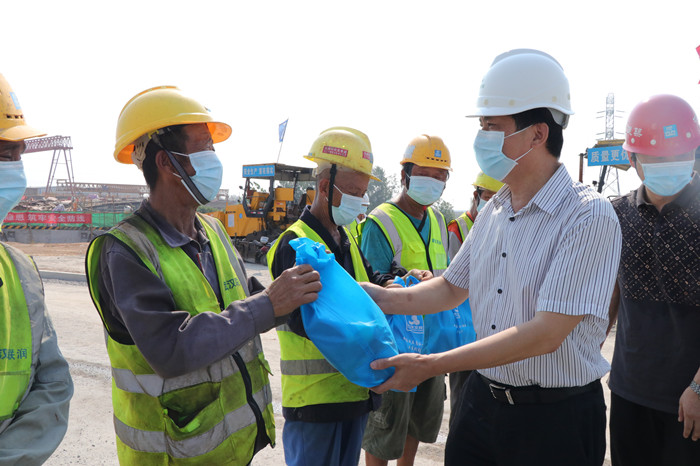 8月4日,集團總經理陳順平親臨北四環項目建設現場,慰問一線產業工人,調研三年攻堅推進情況,了解產業工人生產生活情況、項目公司防暑降溫措施部署落實情況、工作區域安全環境整治情況等,向高溫下工作在一線的廣大勞動者致以親切關懷和慰問。他指出,北四環是全省高速公路建設三年攻堅重要項目,參建各方要始終把安全工作放在首位,持續抓好疫情防控,堅持“三品四更”建設理念,為湖北省和武漢市交通建設作表率、立新功。