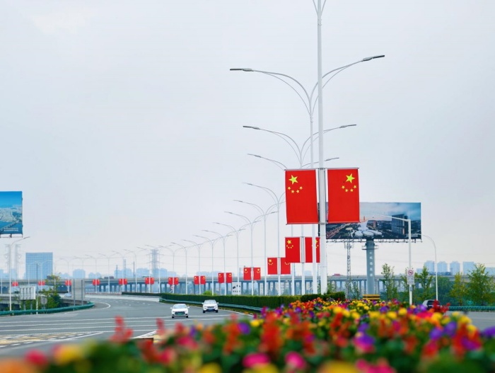 肩負“楚天第一門”城市重要窗口使命的機場二通道,眼下正以嶄新的節(jié)日“盛裝”亮相——190面五星紅旗沿道路兩側次第舒展,如絢爛紅綢蜿蜒繞路,似燎原火焰熾燃征途,將醇厚的喜慶氛圍鋪滿每一公里旅程;沿線邊坡開展“地毯式”雜草清理與精細化草坪養(yǎng)護,千畝綠意如翡翠織毯向天際延展;筆柏列陣挺拔如儀仗,宛若忠誠的綠色衛(wèi)士守護坦途;新優(yōu)月季品種如約綻蕊,瓣瓣含香點綴其間。這抹清新的“生態(tài)綠”與耀眼的“中國紅”交相輝映,勾勒出一幅靈動鮮活的路域風景畫,成為途經旅客眼中的“移動風景線”。