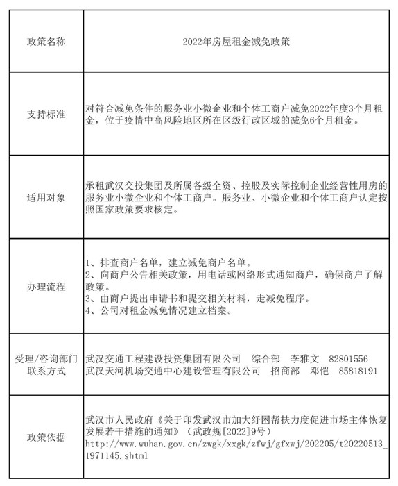 武漢交投集團2022減免服務業小微企業和個體工商戶房屋租金政策公眾指南